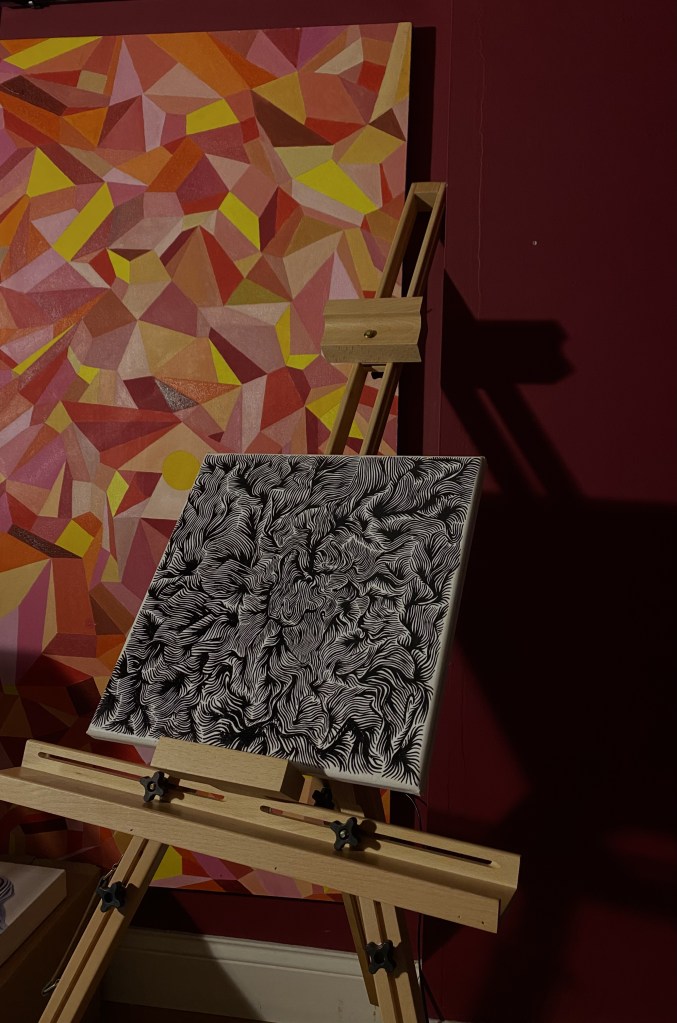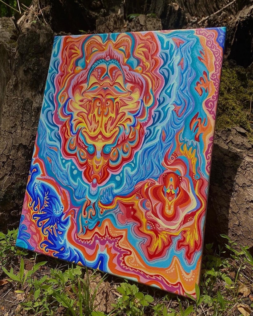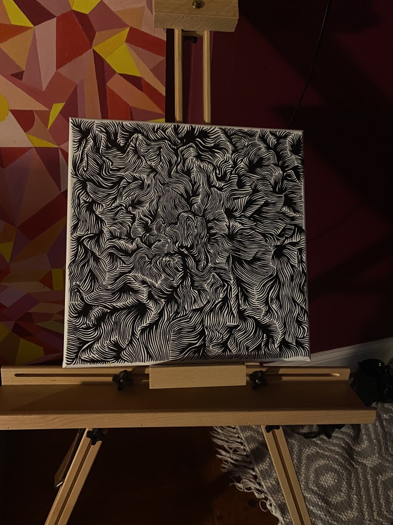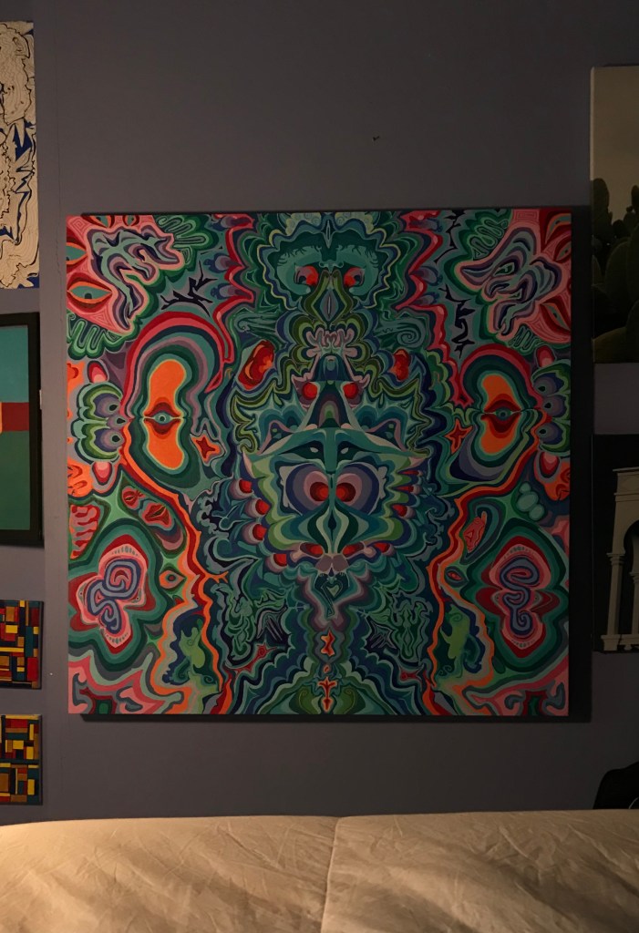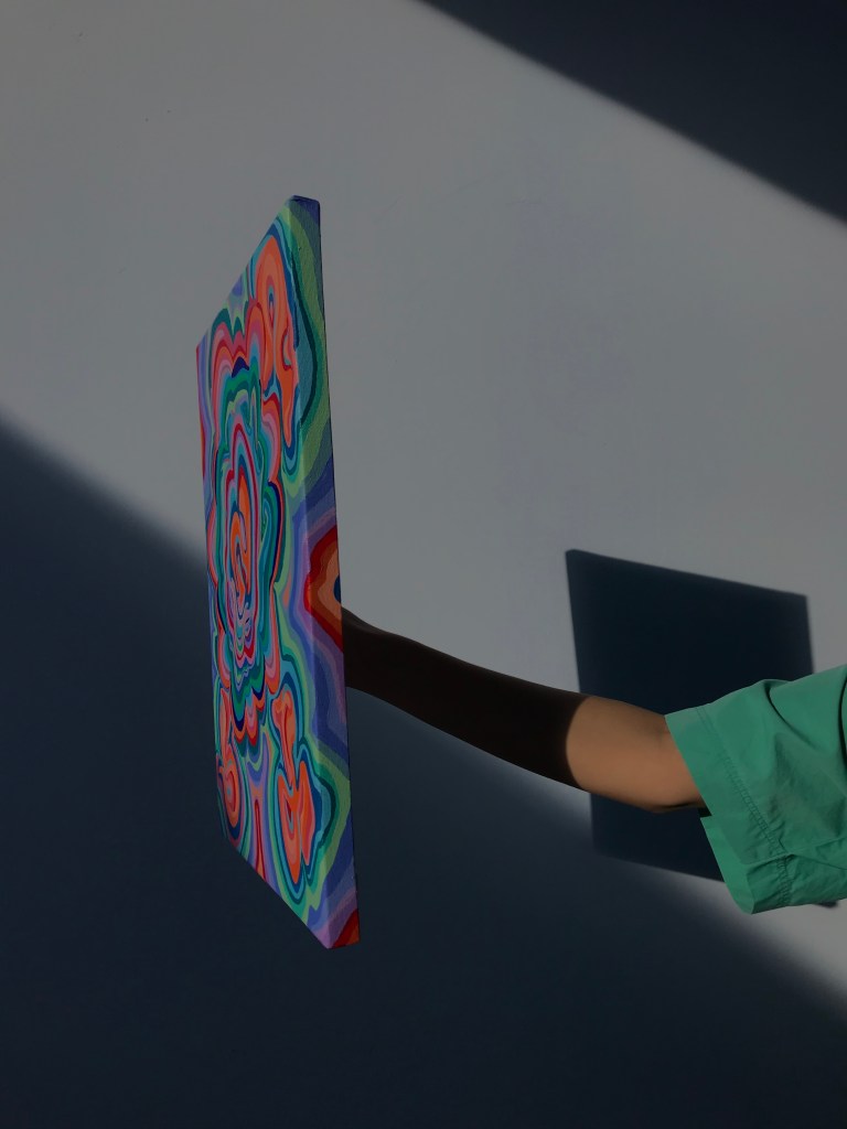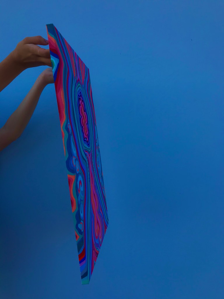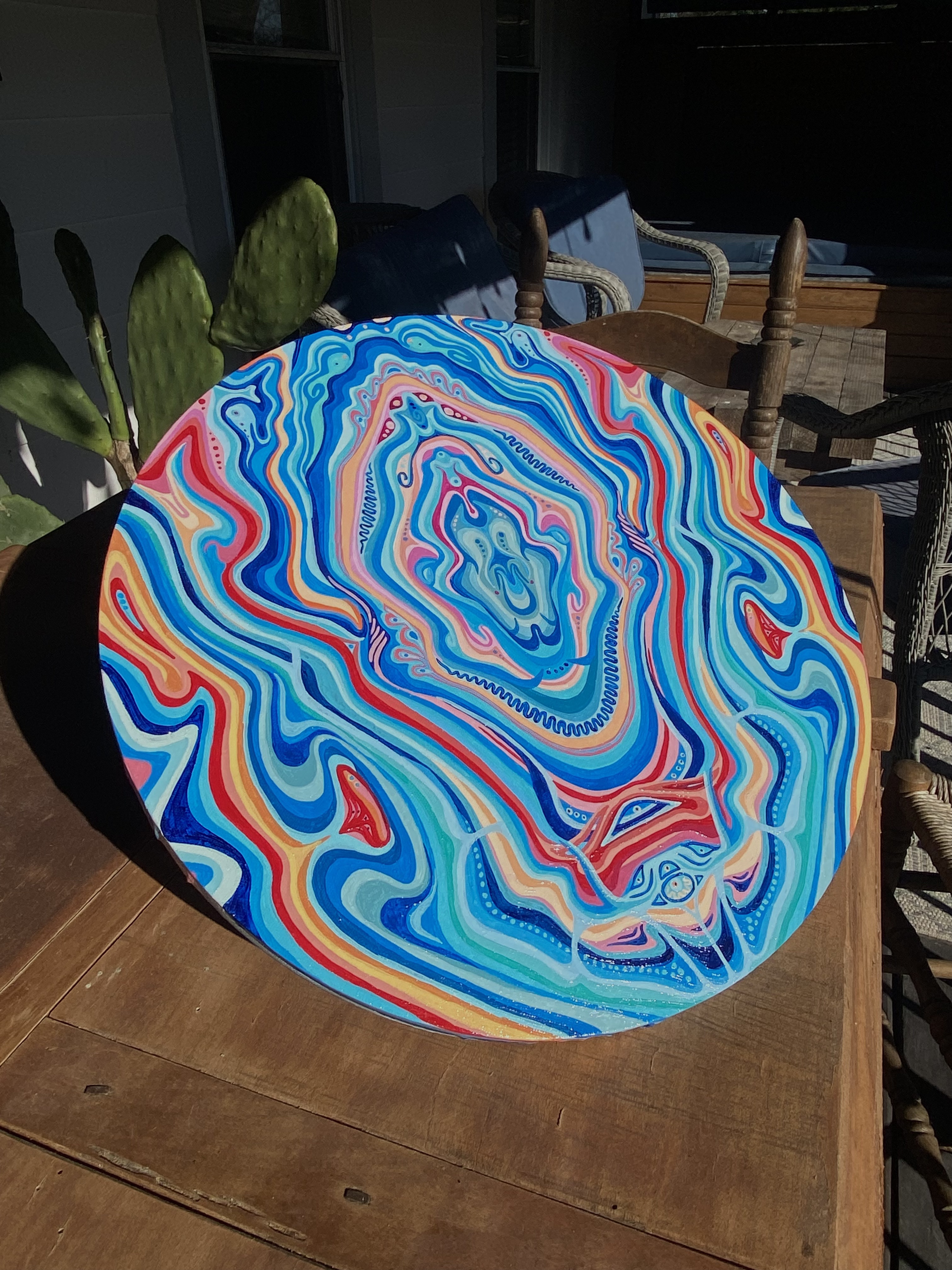 16″x16″ Hand-Painted Canvas, painted with Acrylics, then sealed with a gloss varnish. Easy to hang and adjust.